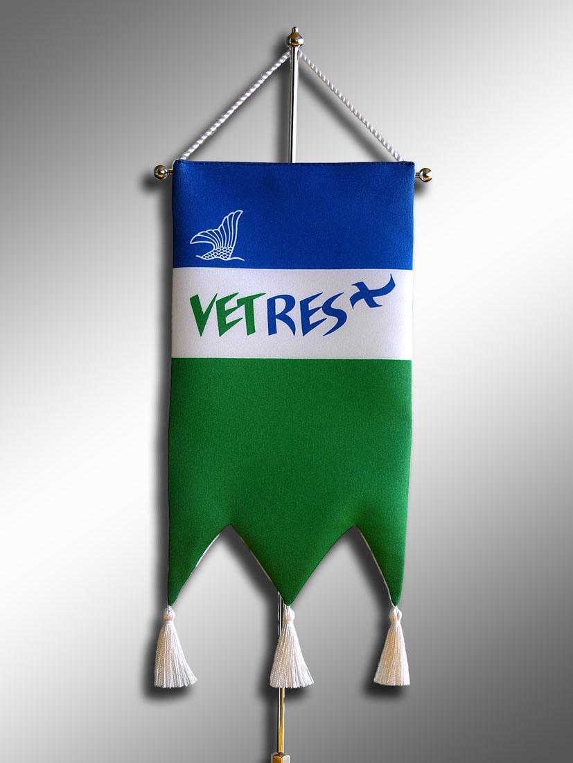 VETRES pöytästandaarilla onnitellaan yhdistyksiä ja henkilöitä näiden merkki-